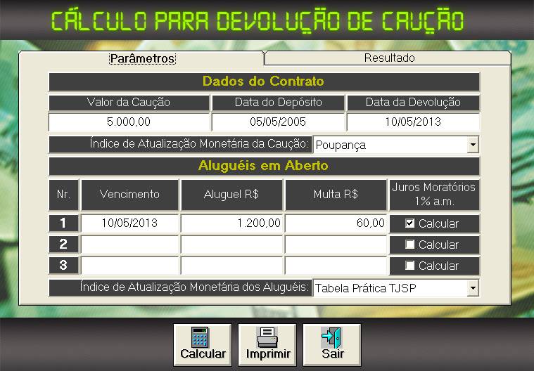 - Calcula o valor atualizado da caução a ser devolvido ao locatário.
