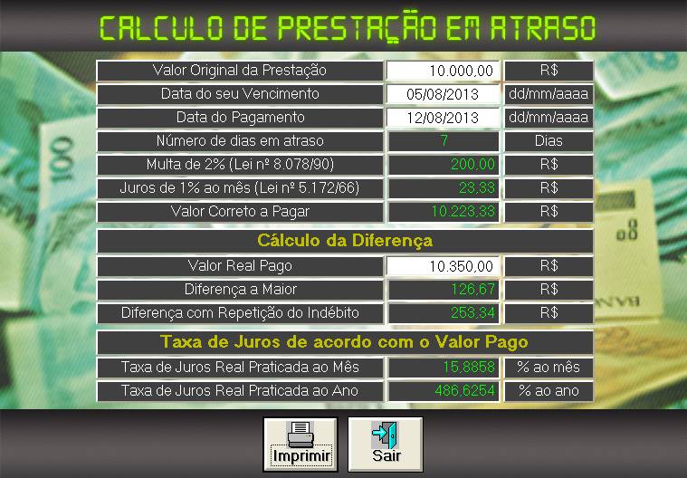 - Calcula o valor correto a ser pago de uma prestação em atraso