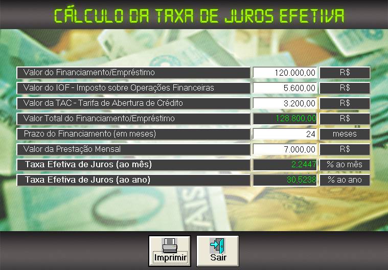 - Permite a verificação da verdadeira taxa de juros cobrada pelas financeiras, conforme extratos bancários e faturas de cartão de crédito