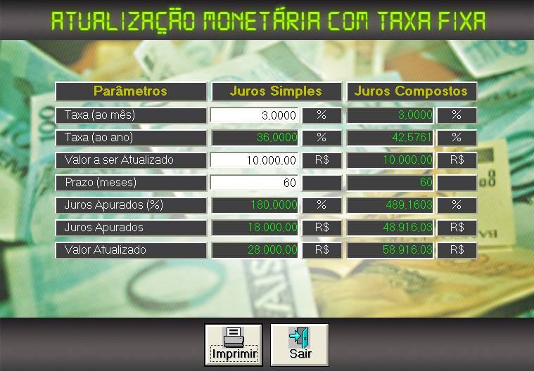 - Atualiza monetariamente valores, conforme taxa fixa informada